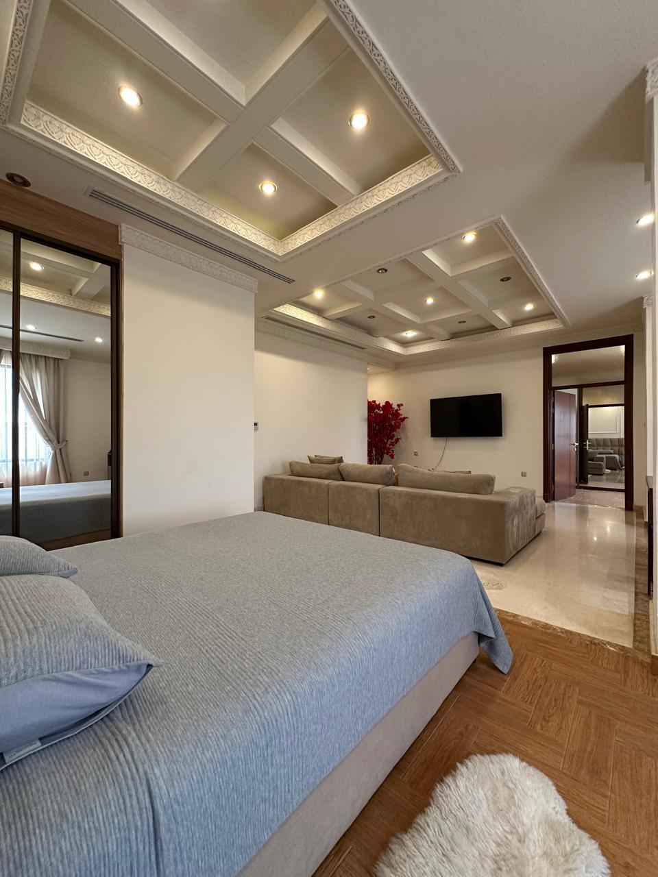 (٤ غرف بحمامات خاصة ودواليب جدارية + جناح بغرفة نوم وصالة وحمامين + وسونا + ومنزع بدواليب جدارية + مطبخ + غرفة صغيرة مخزن + تكييف مخفي).