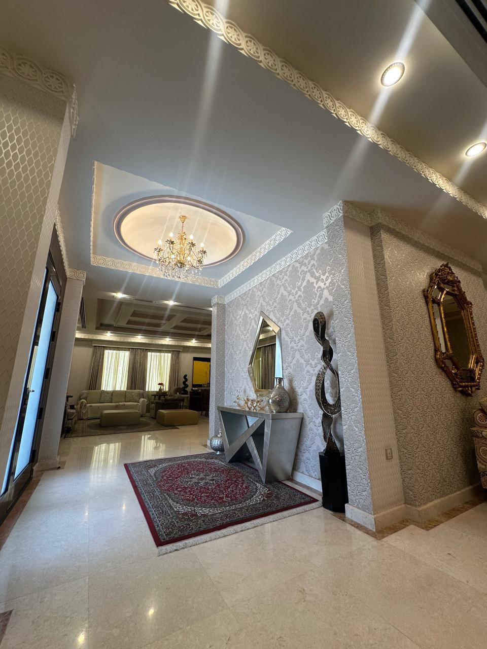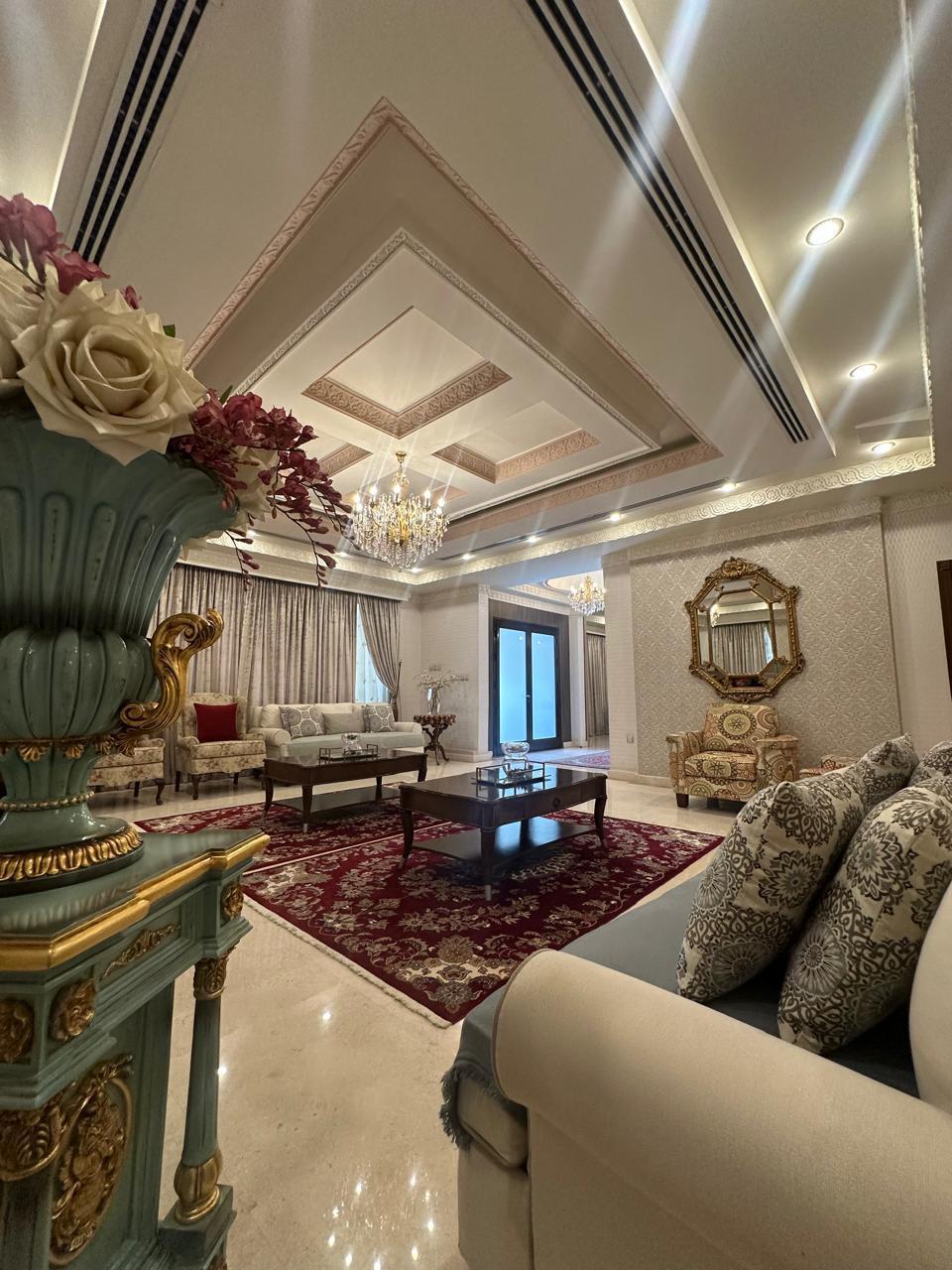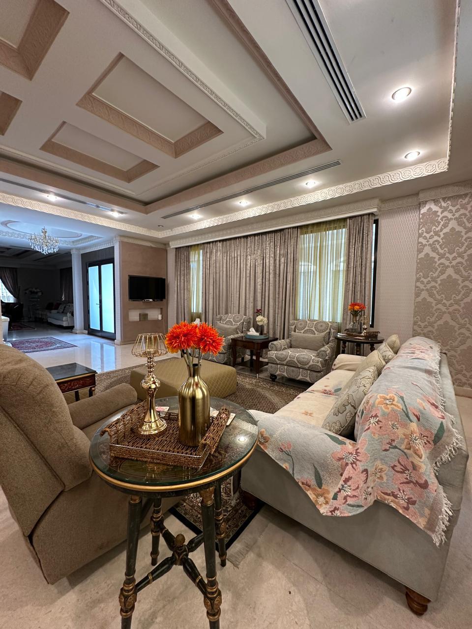 (عدد ٢ صالات ضيوف كبيرة وحدتين تكييف مركزي + ٢ مطبخ واحد تحضير والآخر للطبخ+ غرفة ضيوف بحمام + غرفة شغالة بحمام + غرفة غسيل+ مخزن كبير للمطبخ + تكييف مخفي).