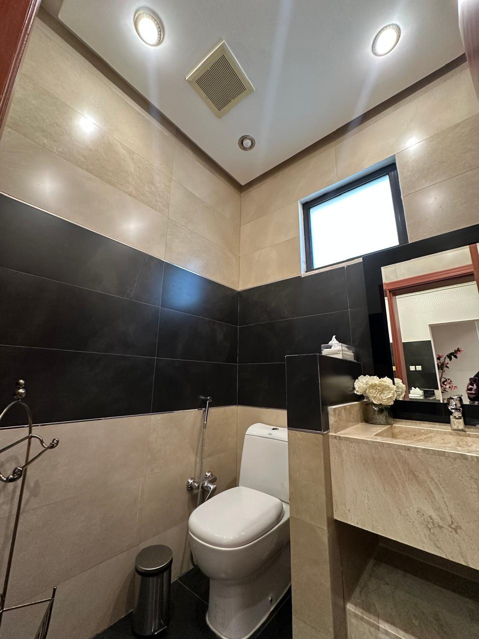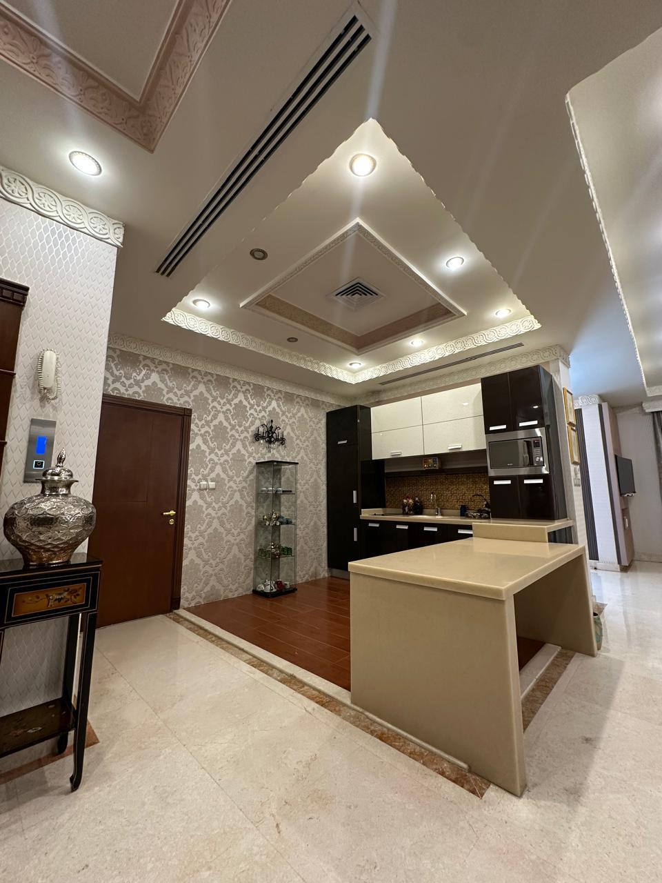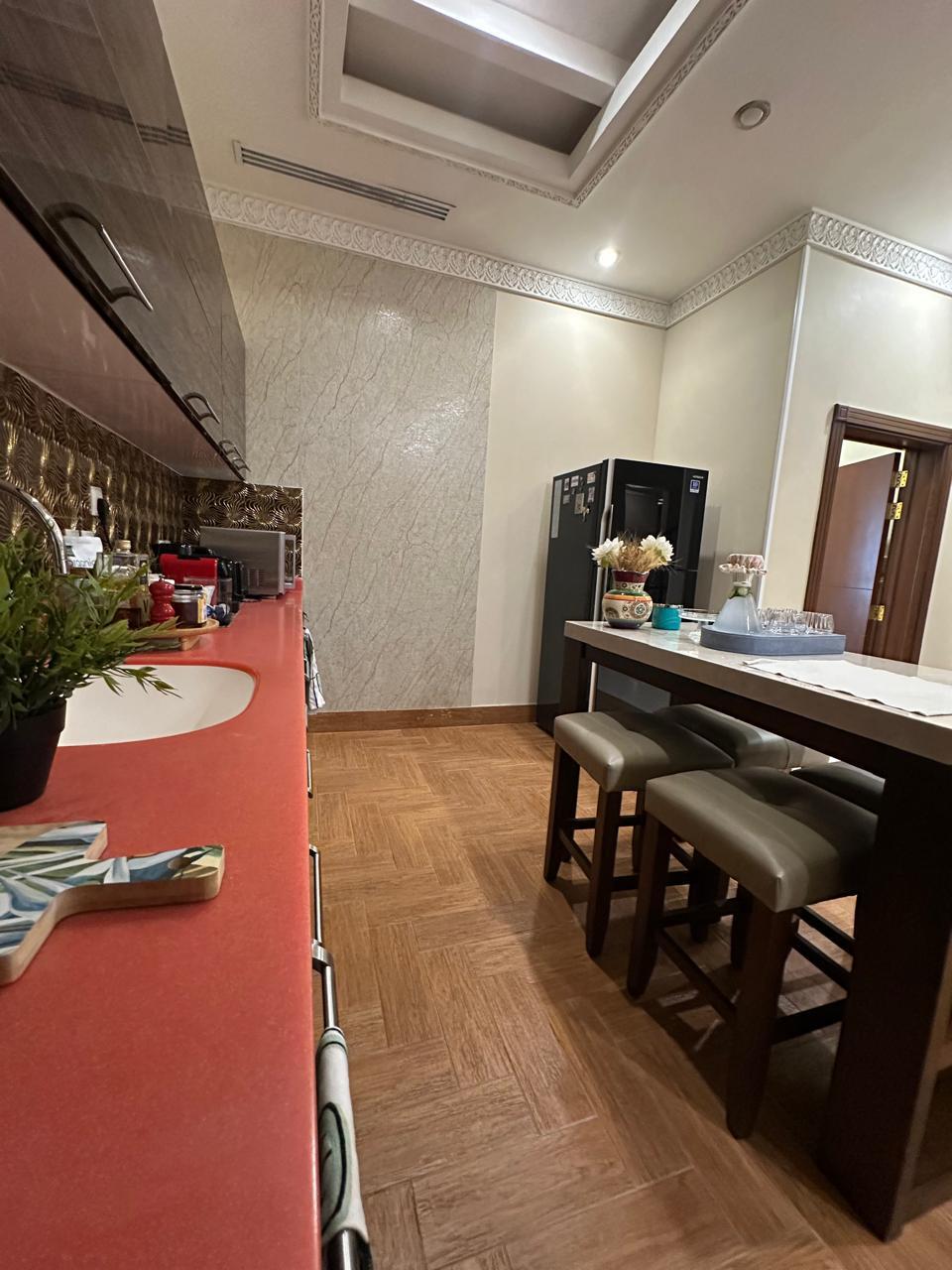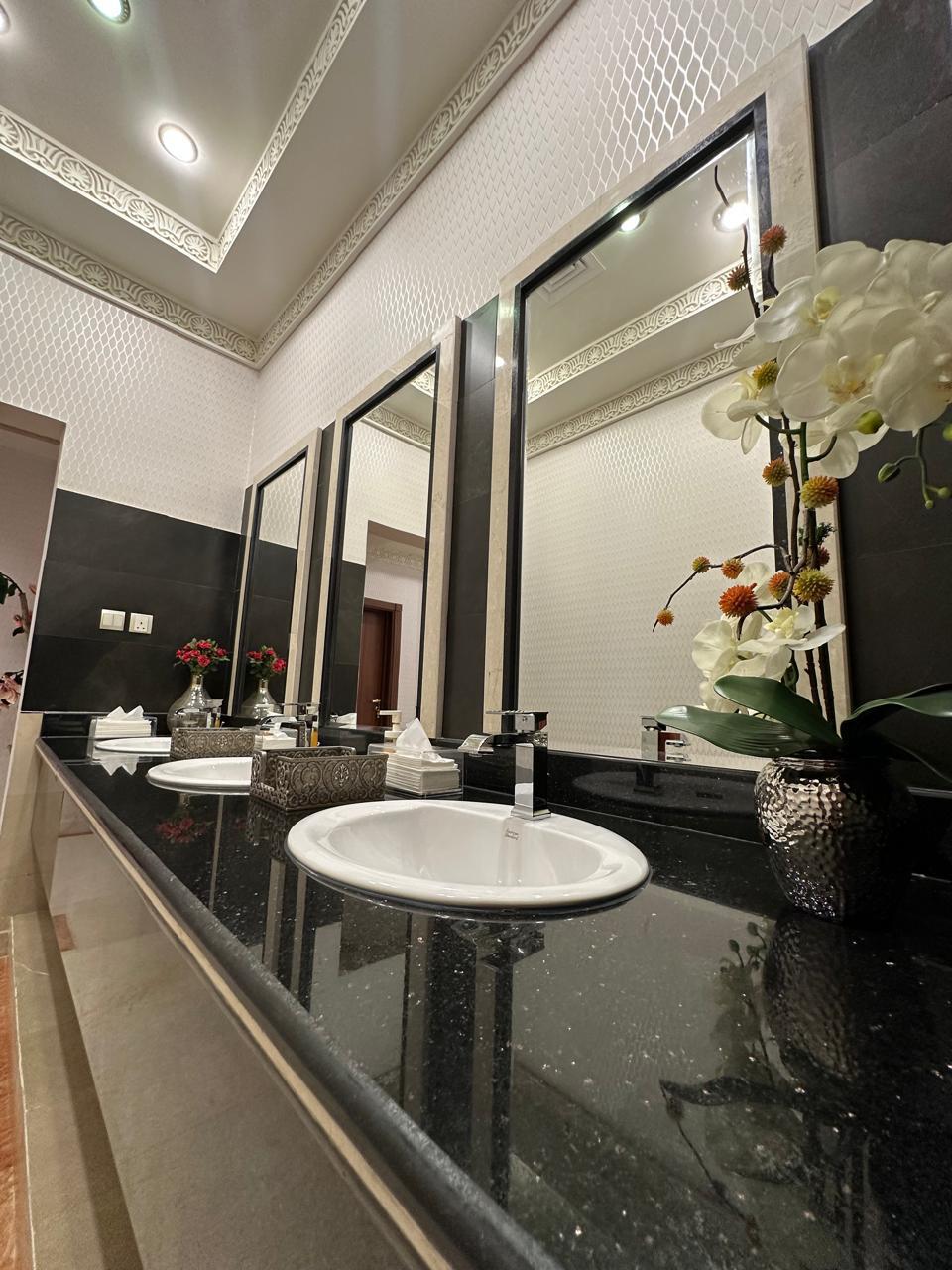 (عدد ٢ صالات ضيوف كبيرة وحدتين تكييف مركزي + ٢ مطبخ واحد تحضير والآخر للطبخ+ غرفة ضيوف بحمام + غرفة شغالة بحمام + غرفة غسيل+ مخزن كبير للمطبخ + تكييف مخفي).