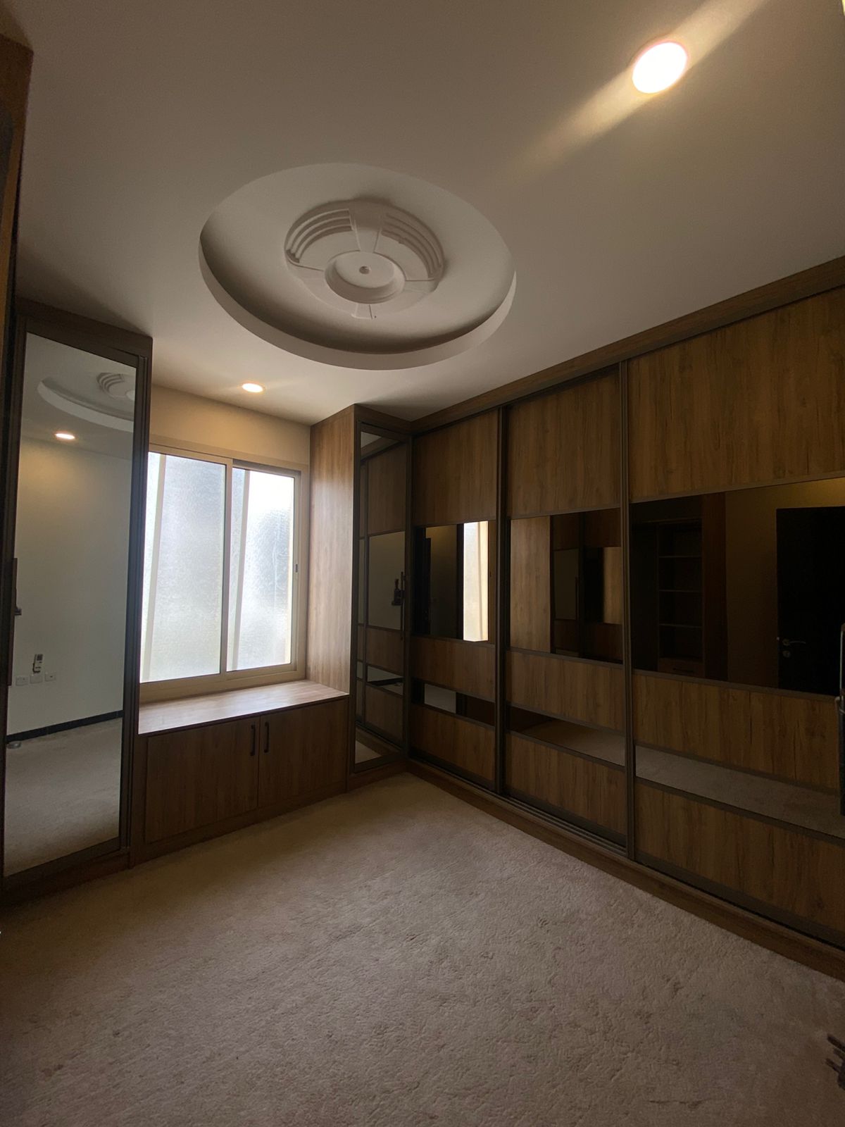 ثلاث غرف نوم ( منها غرفه ملابس مركب الدولاب كامل للغرفة )